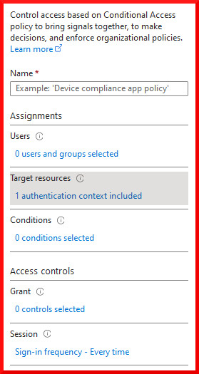 Previously, the scope of the available resources was limited when enforcing reauthentication every time a user signs in. The sign-in frequency session control could only be set to every time when configuring a policy for risky sign-in detection, or when targeting the Intune device enrollment resource.